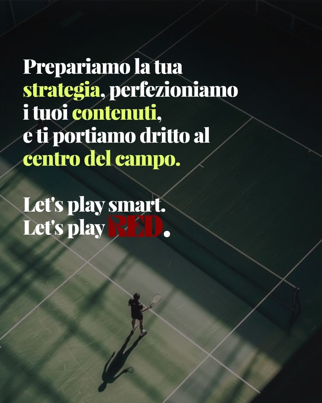 Costruiamo strategie su misura, creiamo contenuti che lasciano il segno e ti accompagniamo in ogni scambio della partita digitale. RED è il tuo partner strategico: creatività, velocità e visione.